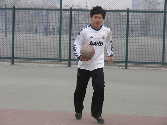 场一开始,对方就改变进攻队形,但是他们好像少些运气,几次极有威胁性的攻门都打偏了。而我经济管理学院这边的进攻也是不松懈,场上的一举一动都牵动着观