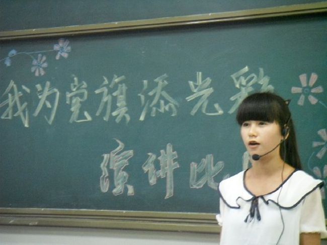 经过评委们的评审,最终,来自2010级第一党支部的马妮以 9.55分的高分获得第一名,2011级党支部的长孙思萌等获得二等奖、2010级第二党支部的石敏等获得三等奖。赛后,2010级第二党支部书记齐基老 师作了总结,他强调,为党旗增光添彩是一个党员的毕生追求,要将其具体化,体现在日常的学习中、工作中和生活中,以实际行动为党旗增光添彩。