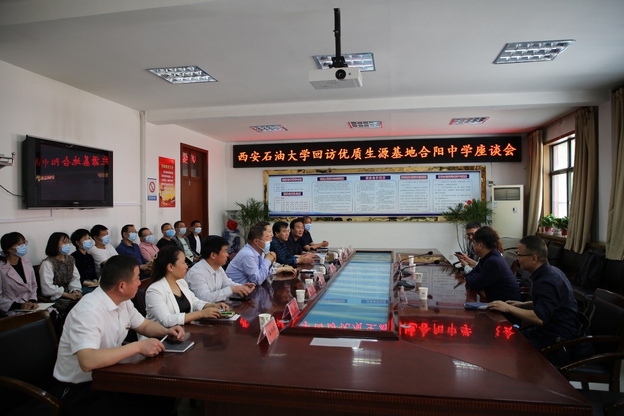 当日,樊晓民一行还回访了优秀生源基地合阳中学、澄城中学。樊晓民高度评价了两所中学学子在我校的优秀表现,向两所中学对我校人才培养工作的支持表示感谢。合阳中学校长乐兴贵、澄城中学校长王会香分别回顾了以往双方愉快的合作经历,表示在做好今年的招生宣传工作的同时,持续加强与我校的联系和合作,共同为社会培养更多的人才。