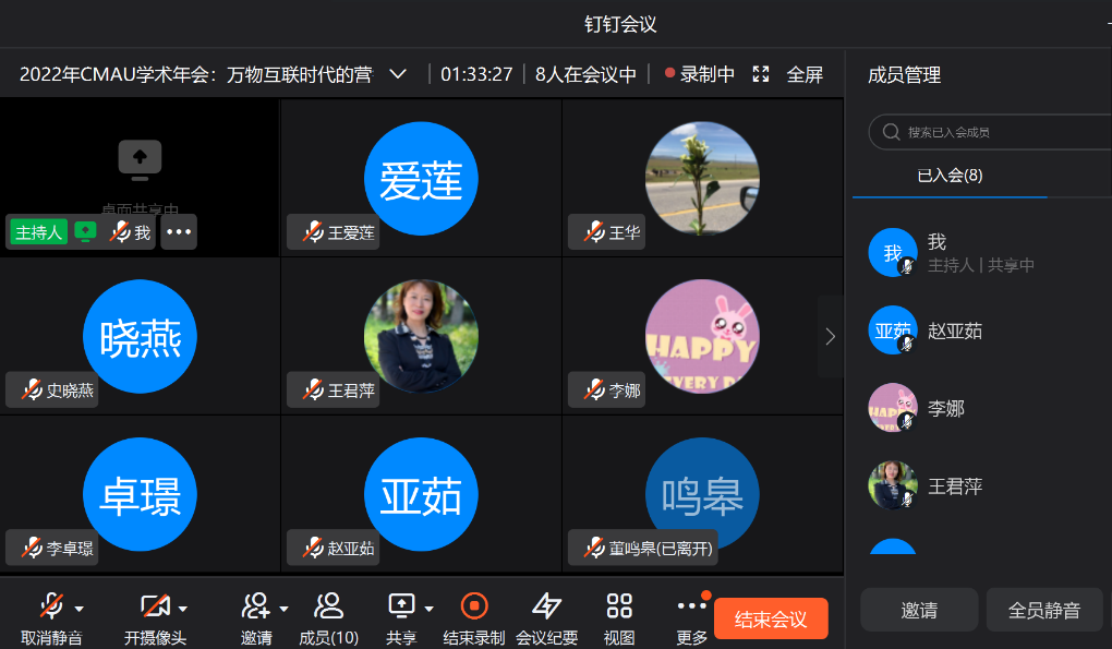 7月16日—17日,经济管理学院院长王君萍、各系教师及研究生代表通过钉钉会议在线参加由中国高等院校市场学研究会(Chinese Marketing Association of Universities,CMAU)主办,吉林大学商学与管理学院承办的学术年会。会议吸引了来自全国40余所高校的近500余位师生及业界代表,旨在共同探讨交流万物互联时代营销创新的新形势、新挑战、新趋势,分享万物互联时代营销创新的解决方案。