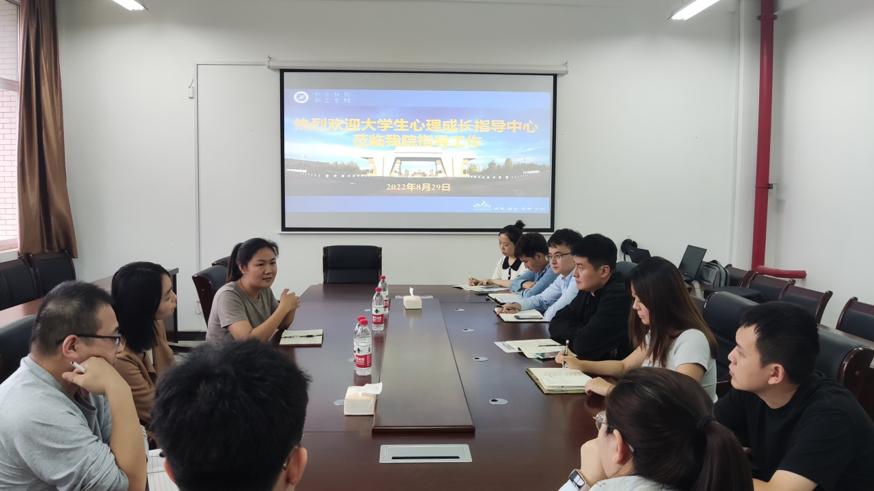 8月29日,学生心理成长指导中心办公室主任焦文洁,专职教师赵晶、闫高斌一行3人,到经济管理学院开展心理健康教育工作交流座谈,座谈会在鄠邑校区崇文楼305会议室举行,经济管理学院学生工作办公室全体辅导员参加本次活动。