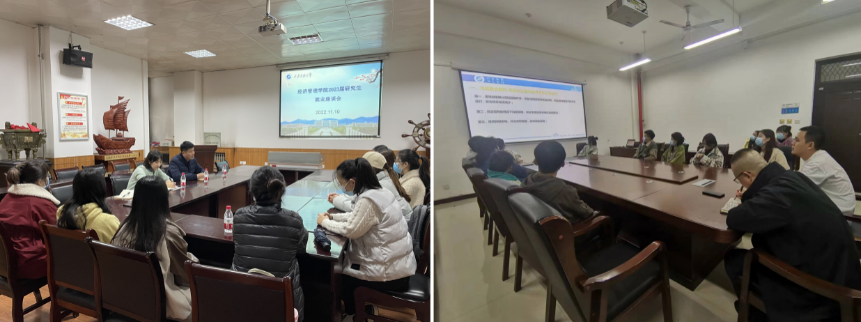为进一步了解学院2023届毕业生就业情况,掌握学生求职动态,解决学生求职中的困难,11月10日,经济管理学院召开2023届毕业生就业座谈会。学院党委副书记王刚,学生工作办公室主任李博文,2023届学生辅导员陆晓寒、王中立,毕业班学生代表共50余人参加会议。