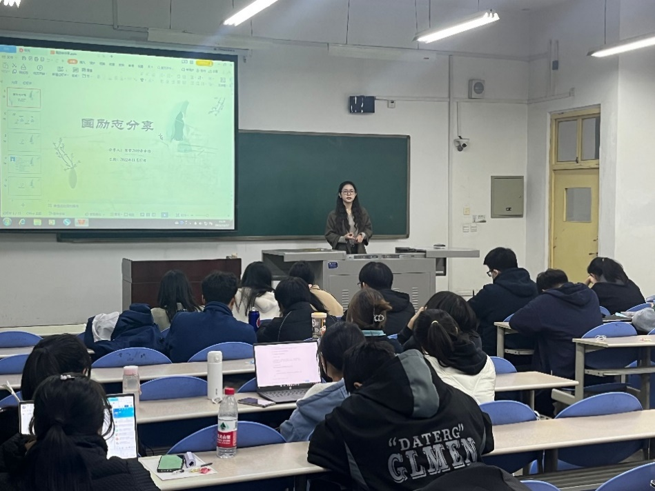 斯乐怡、张瑞同学分别从学习、证书、竞赛、活动、生活等五个方面与大家进行分享。学习方面,向大家展示了自己的学习成绩与获奖证书,强调作为国贸专业学生,应高度重视高数和英语学习;证书方面,强调四六级的重要性及其他证书的考取事项;竞赛方面,希望各位同学密切关注竞赛信息,多认识优秀学长学姐,积极参加各项竞赛;活动生活方面,建议同学们减少内耗,提高效率,学会选择。