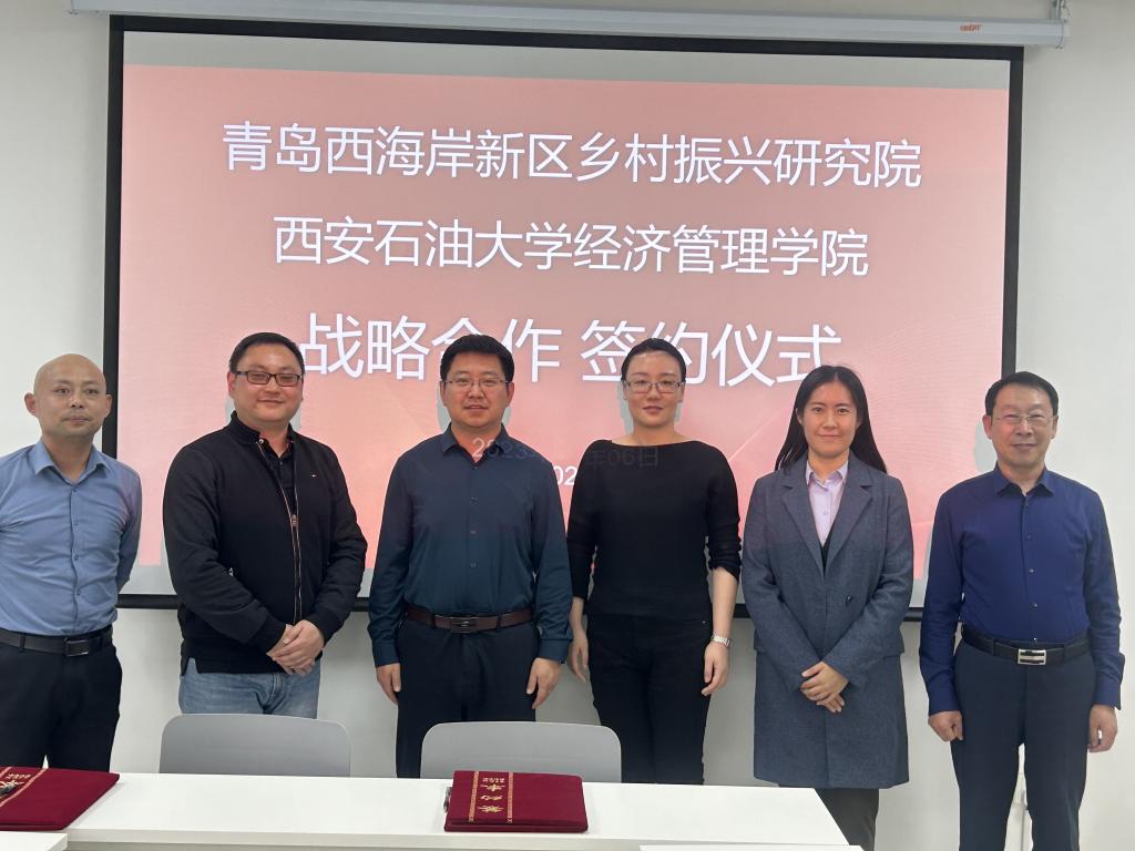 2月6日,西安石油大学经济管理学院与青岛西海岸新区乡村振兴研究院战略合作签约仪式在青岛西海岸农高发展集团研发中心顺利举行。区畜牧兽医发展中心主任、乡村振兴研究院理事长聂恒,西安石油大学经济管理学院代表陈丁,以及研究院副院长、理事和西安石油大学经济管理学院其他代表出席签约仪式。