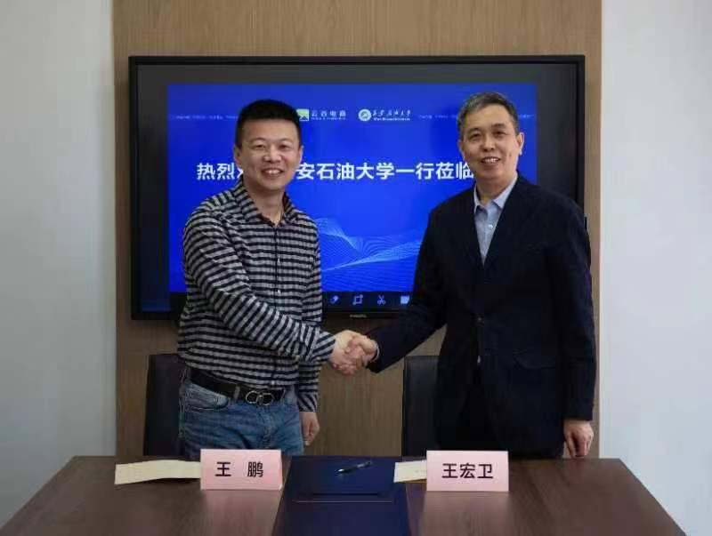 王宏卫书记表示,开展“访企拓岗”促就业活动是强化产学研合作的重要途径,也是提升人才培养质量的突破口,更是促进毕业生高质量就业的迫切需求。云谷电商的企业文化与西安石油大学的铁人精神契合度高,他希望以此次合作交流为契机,深入了解企业对人才的需求点、关注点,在人才混合式教学、理论与实践双向互动培养方面持续发力,为毕业生开拓更多的就业岗位资源,同时也为在校生挖掘更多的实习岗位资源。座谈会后,双方进行了西安石油大学经济管理学院、西安云谷壹号电子商务有限公司共建“大学生实习就业基地”的揭牌仪式和合作签约仪式。