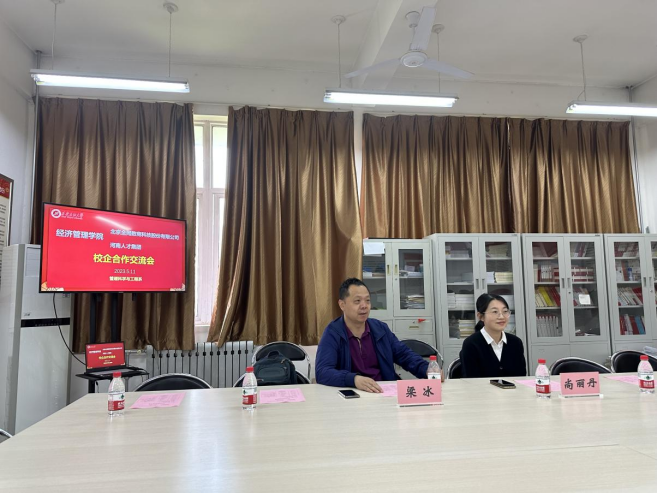 座谈会上,赵需要老师就经济管理学院人才培养、学生规模、合作意向等方面为与会人员进行介绍。北京全网数商科技股份有限公司人才事业部部长梁冰从公司业务范畴出发,就双方合作范围、合作模式开展交流。北京全网数商科技股份有限公司成立于2005年,前身为北京友联慧通科技有限公司,是电子商务解决方案及服务提供商。河南省人才集团有限公司于2022年5月经河南省委、省政府批准设立,是服务人才强省战略的市场化抓手,省委组织部、省人力资源和社会保障厅负责业务指导。尚丽丹副总经理从集团“产学研一体化”业务范式进行了详细介绍,并从个人经历出发,表达了积极搭建校企人才共育共享平台意向。