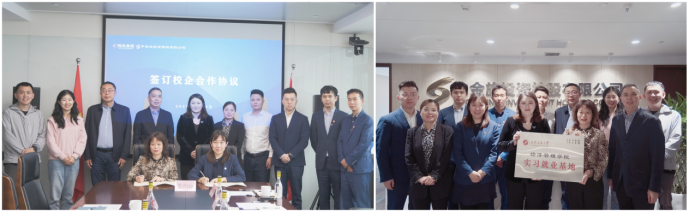 座谈会后,双方签订校企合作协议,共同为“大学生实习就业基地”揭牌,并就开展校外实习、共同做好人才引进等校企合作具体事宜进行了深入的交流探讨。