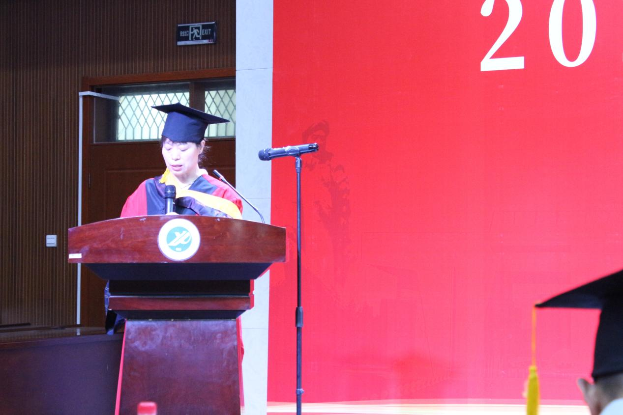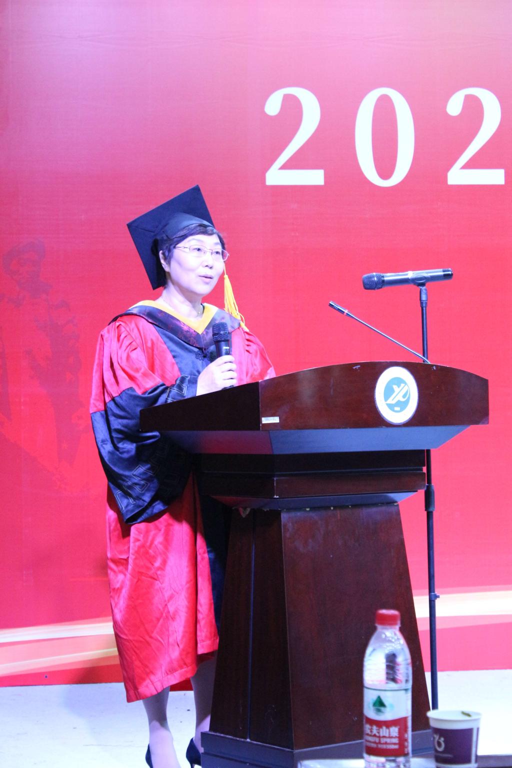 学院教授委员会主任、院长王君萍致辞,回顾了2023届毕业生的四年求学岁月,表达了对毕业生的真挚祝福,她寄语即将扬帆启航的毕业生,在面对各种艰难险阻时,始终秉承“诚信、融合、尽责、创新”的良好院风,祝愿同学们将个人成长与国家富强、民族复兴、人民幸福的历史伟业紧密相联。