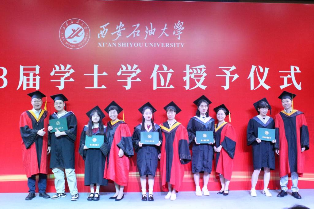 最后,学院领导及教授委员会委员为学士学位获得者授予学位。王君萍,吴勋、李春霄,裴旭东、吴文洁、梁芳、杨睿娟、陈敏灵等8位老师分别为学士学位获得者拨穗、授予学位并送上美好祝福。全体成员起立共唱校歌《辉煌明天》,经济管理学院2023届本科毕业生学士学位授予仪式圆满结束。