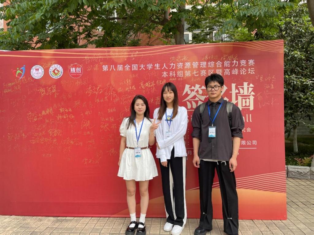 6月24-25日,由中国人力资源开发研究会主办的第八届全国大学生人力资源管理综合能力竞赛(本科组第七赛区)在宝鸡文理学院举行,我校经济管理学院人力资源管理专业2020级学生汪少康、蒋婷、尚姝言经过不懈努力,获得二等奖,经济管理学院人力资源系教师朱海娟和杨矗老师荣获优秀指导老师。