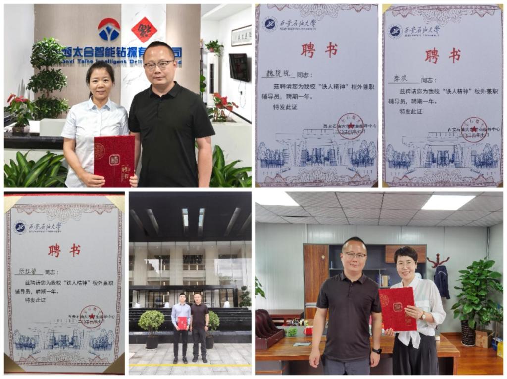 走访期间,王刚分别与中铁建工西安地铁6号线项目书记张红琴,正大集团西北区财务总监张鹏(2009级校友),陕西太合智能钻探有限公司财务总监李欢(2005级校友),陕西太合智能钻探有限公司人力资源部长魏院院(2010级校友)进行交流并颁发“铁人精神”校外兼职辅导员聘书。