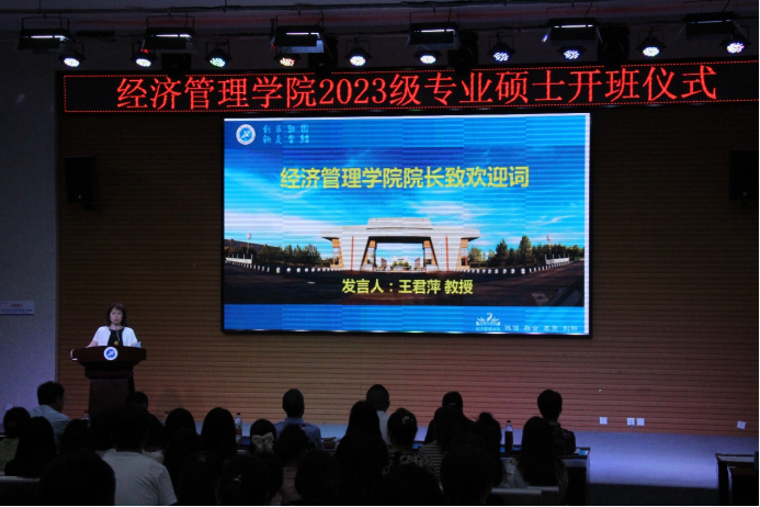 9月6日晚,经济管理学院2023级专业学位硕士开班仪式在鄠邑校区就业指导中心多功能厅举办。经济管理学院党委书记王宏卫,院长王君萍,党委副书记王刚,副院长吴勋、李春霄,MPAcc项目负责人宁宇新,MBA项目负责人黄莉,导师代表杨睿娟,优秀校友代表李广涛,以及学院负责研究生管理相关工作的老师们参加了此次仪式。