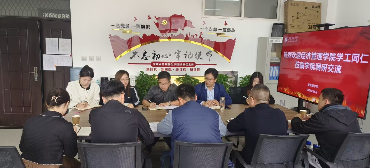 为加强辅导员队伍建设,拓宽学院学生工作思路,10月25日上午,经济管理学院与新能源学院在天工楼223室组织开展学生工作交流。新能源学院党委书记宋海洋、经济管理学院党委副书记王刚,两个学院学生工作办公室主任马武军、李博文及相关年级辅导员参加。