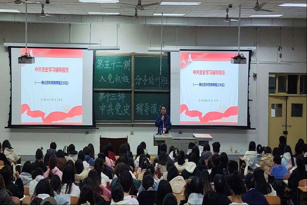 为推进党史学习教育,提升入党积极分子思想政治教育工作质量,11月23日,经济管理学院第五十二期入党积极分子培训班第十三讲于鄠邑校区博览楼239教室举行,本次培训以“中共党史学习辅导报告”为主题,由人文学院党委书记余小勇主讲,第五十二期全体入党积极分子参加。