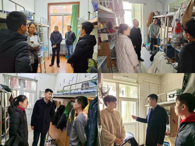 本次宿舍检查工作的重点在于排查宿舍安全隐患、落实宿舍卫生标准,宿舍内务标准及安全隐患排查是本次检查活动的重点。检查中,王宏卫书记详细询问了学生上课考试情况、开题、中检答辩情况以及研三学生求职就业情况,就学生的具体情况给予针对性指导。王刚副书记特别强调了宿舍杂物需要注意及时清理,保持良好的宿舍环境。李春霄副院长提醒各位同学一定要把用电安全时刻放在心中,增强安全意识,不使用违规电器。同时,在检查过程中各位辅导员老师也叮嘱学生根据近期气温变化及时增添衣物,做好流感预防工作,以良好的状态学习备考。