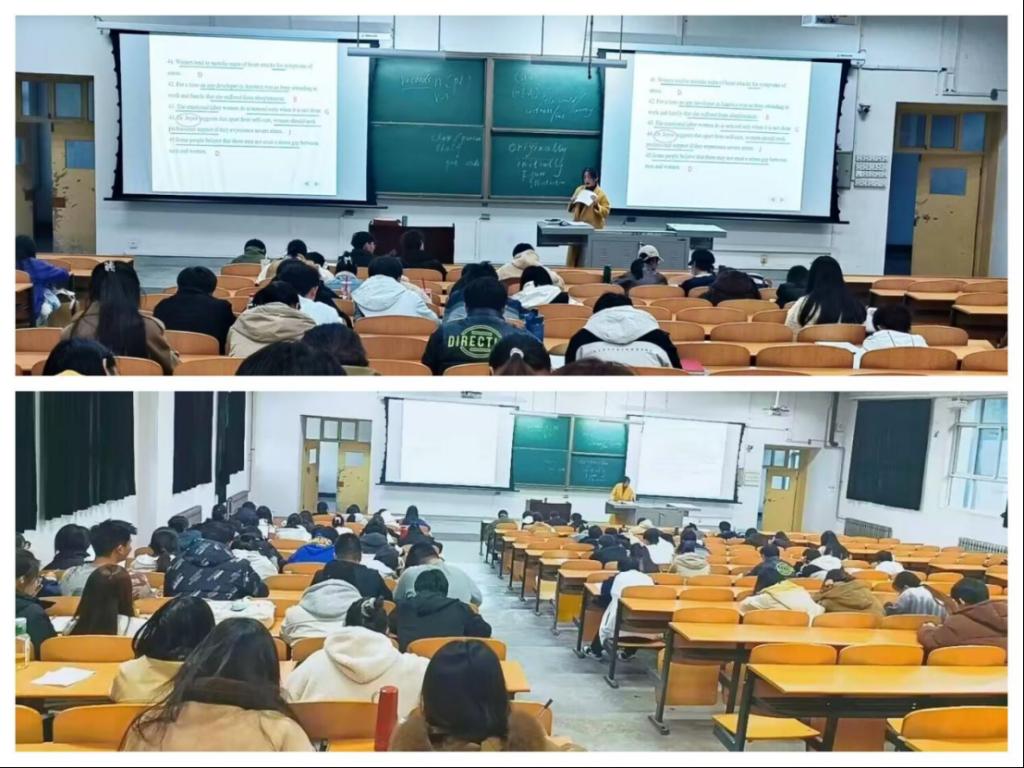 四级冲刺专题培训课。10月31日—11月30日,学院在鄠邑校区博览楼234教室开展了为期一个月的英语四级冲刺专题培训课,设有“四级试卷板块结构与分值”“写作与翻译”“听力技巧”以及“阅读技巧”四大专题课程,由外国语学院武绒老师主讲,全院共计200余名学生参加。在培训中,武绒老师为大家讲解了四级考试的整体流程,对各题型的考场时间规划提出有效建议,对近年考试真题进行解析,讲解写作技巧及翻译要点、总结听力妙招、传授阅读板块做题方法等,为大家提供了针对性的复习策略。
