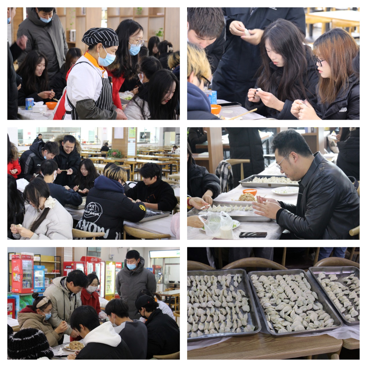 12月22日中午,学院辅导员及教学办、实验室老师与团委学生会、学生党建工作办公室学生干部等50人在鄠邑校区新食堂进行“同包冬至饺子”活动。包饺子在中国传统文化中有团圆美好的寓意,大家各展其能,默契配合,用家乡的方式包出各种造型、不同风格的饺子。老师同学们一同分享各自家乡的冬至习俗,现场欢声笑语、其乐融融。