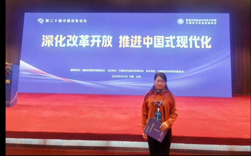 1月10日,由国家发展改革委指导、中国经济体制改革研究会主办的主题为“深化改革开放 推进中国式现代化”的第二十届中国改革论坛在北京举行,与会人员聚焦“深化改革开放,推进中国式现代化”展开深入探讨。我校经济管理学院教师黄莉副教授作为陕西省改革发展研究会的参会代表受邀参加了本次论坛。