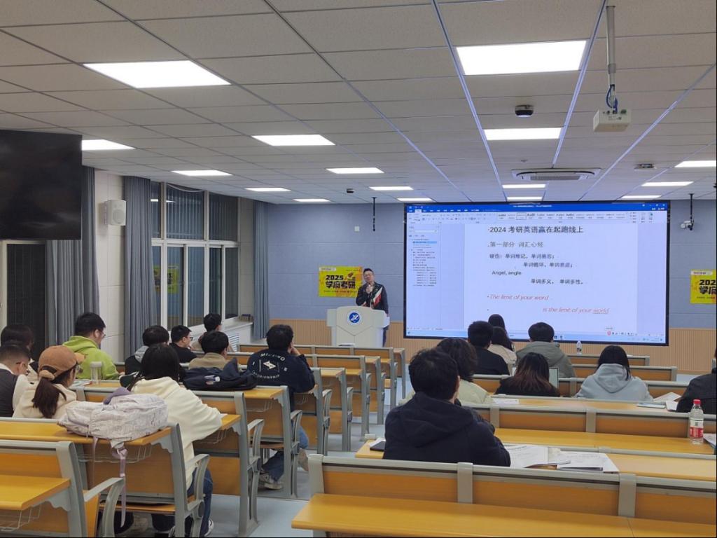 为了进一步提高经济管理学院学生的考研热情,调动考研积极性,明确考研目标,掌握相关考研技巧。经济管理学院于3月19日在鄠邑校区博览楼110教室举办了“研路漫漫,勇毅向前”考研专题讲座,本次讲座由学府考研万伟老师担任考研英语主讲人,熊世才老师担任考研规划指导课程老师,经济管理学院2021级100余名学生参加了本次讲座。