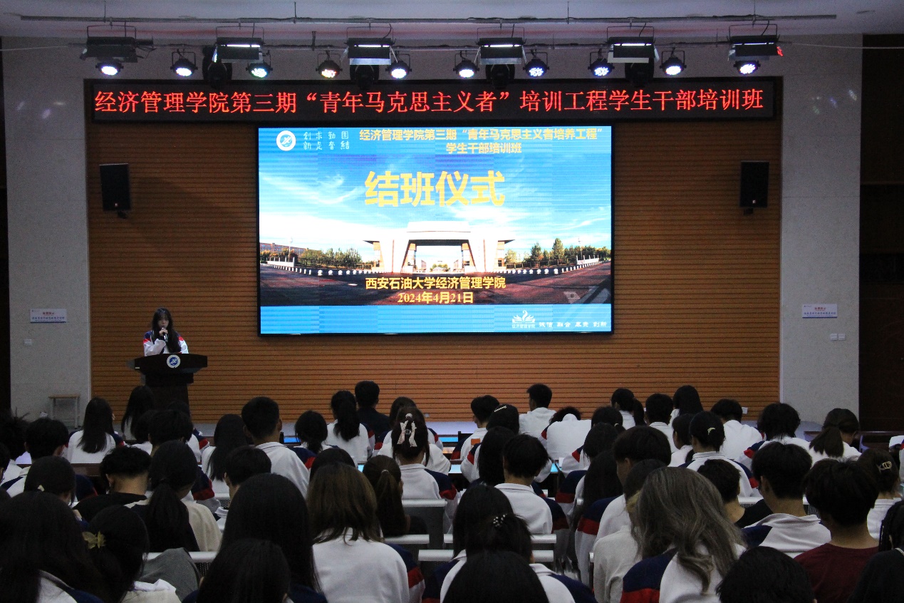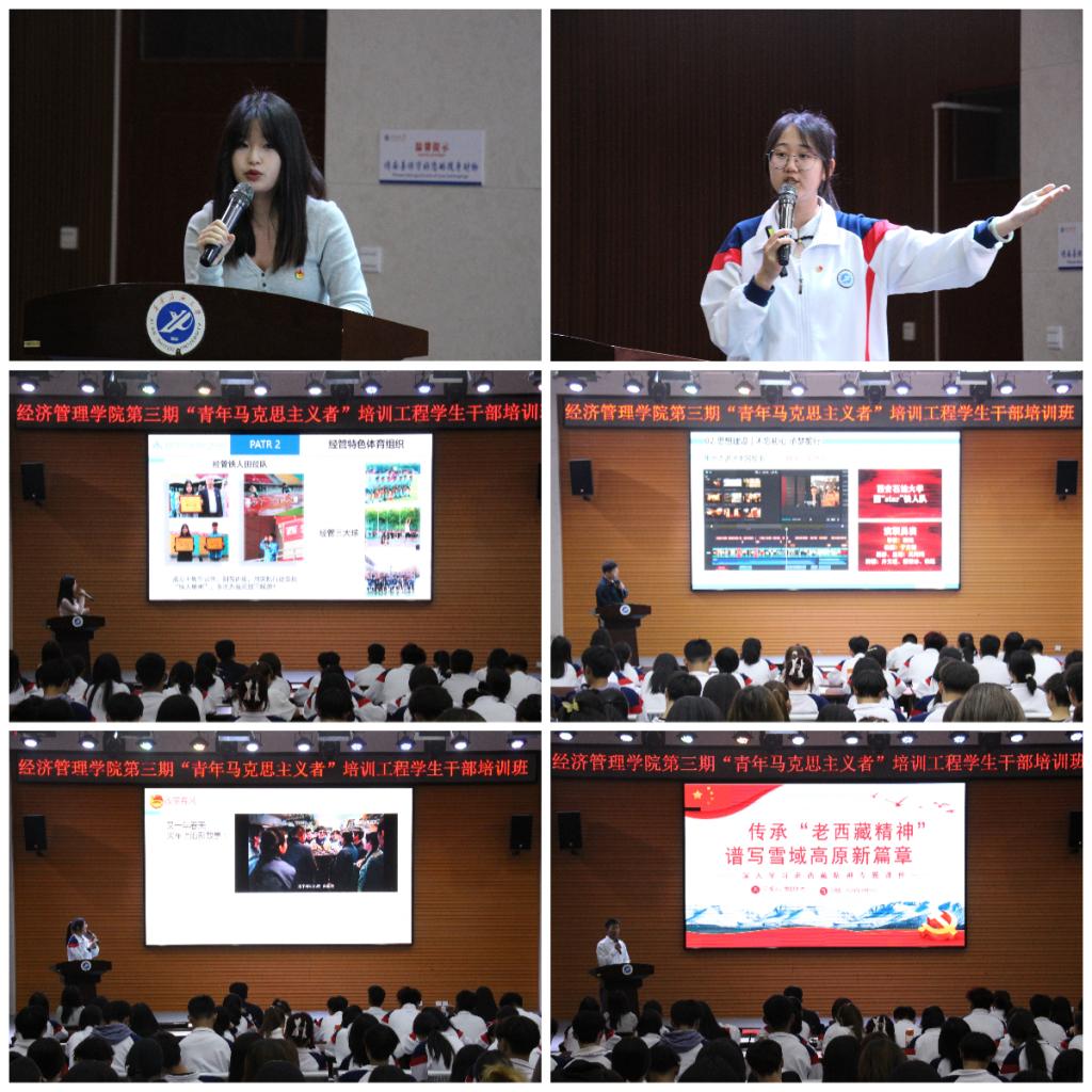 4月21日,经济管理学院第三期“青年马克思主义者培养工程”学生干部培训班第六讲暨结班仪式在鄠邑校区崇文楼就业指导中心多功能厅举办。本次培训课为朋辈经验分享交流课,经济管理学院团学干部代表、优秀班集体代表等交流发言,2023级学生干部150余人参加本次活动。
