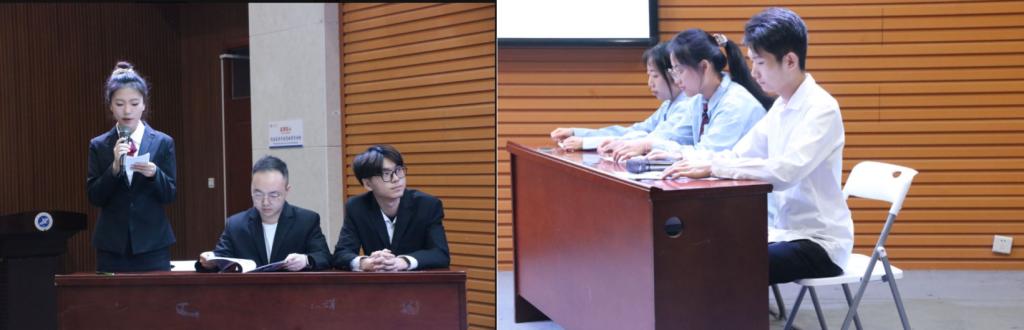 此次比赛分为三个环节:案例分析ppt展示环节、对抗组质询答辩环节、评委老师提问环节。比赛现场气氛紧张而热烈,各支参赛队伍纷纷展现出他们对案例的深入剖析和卓越的研究能力。在陈述环节,选手们以清晰的思路、精准的语言,将案例中的关键问题一一阐述,并提出了富有创意的解决方案。答辩环节,评委们以高度专业的素养和严格的标准,对参赛队伍进行了深入提问和细致点评。参赛队伍凭借扎实的知识基础和敏捷的思维,给出了精彩的回答。
