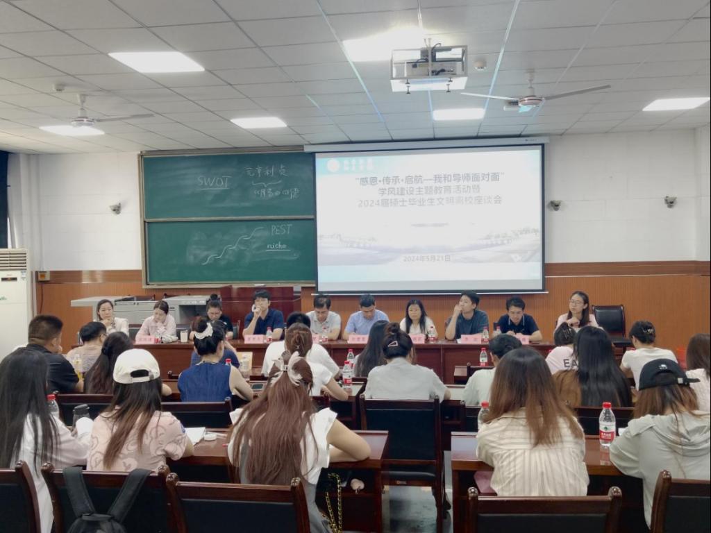5月21日,经济管理学院在雁塔校区东阶201教室召开“感恩·传承·启航—我和导师面对面”学风建设主题教育活动暨2024届硕士毕业生文明离校座谈会。本次活动围绕“弘扬科学家精神,恪守学术道德,培育优良学风”这一主题,深入学习贯彻习近平新时代中国特色社会主义思想,全面落实我校第三次党代会精神,讲好科学家故事,传播优良学风,引导研究生坚守学术道德与科研诚信,涵养优良学风。经济管理学院副院长李春霄,管科系赵需要,企管系黄聿舟,经济系唐娟莉,会计系侯晓靖、黄莉、郑蕊,研究生辅导员李政、阮添舜及各年级研究生代表30余人参加此次活动,活动由研究生辅导员陆昕阳主持。