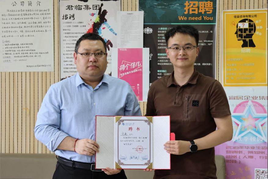 在交流中,史阳对立信会计师事务所在学院班级建设和就业工作等方面给予的大力支持表示感谢,他着重介绍了2024届财会专业毕业生的人数规模、班级建设、学生获奖等基本情况,诚挚邀请企业专家经常到学校分享行业经验,并为张航颁发了“铁人精神”校外兼职辅导员聘书。
