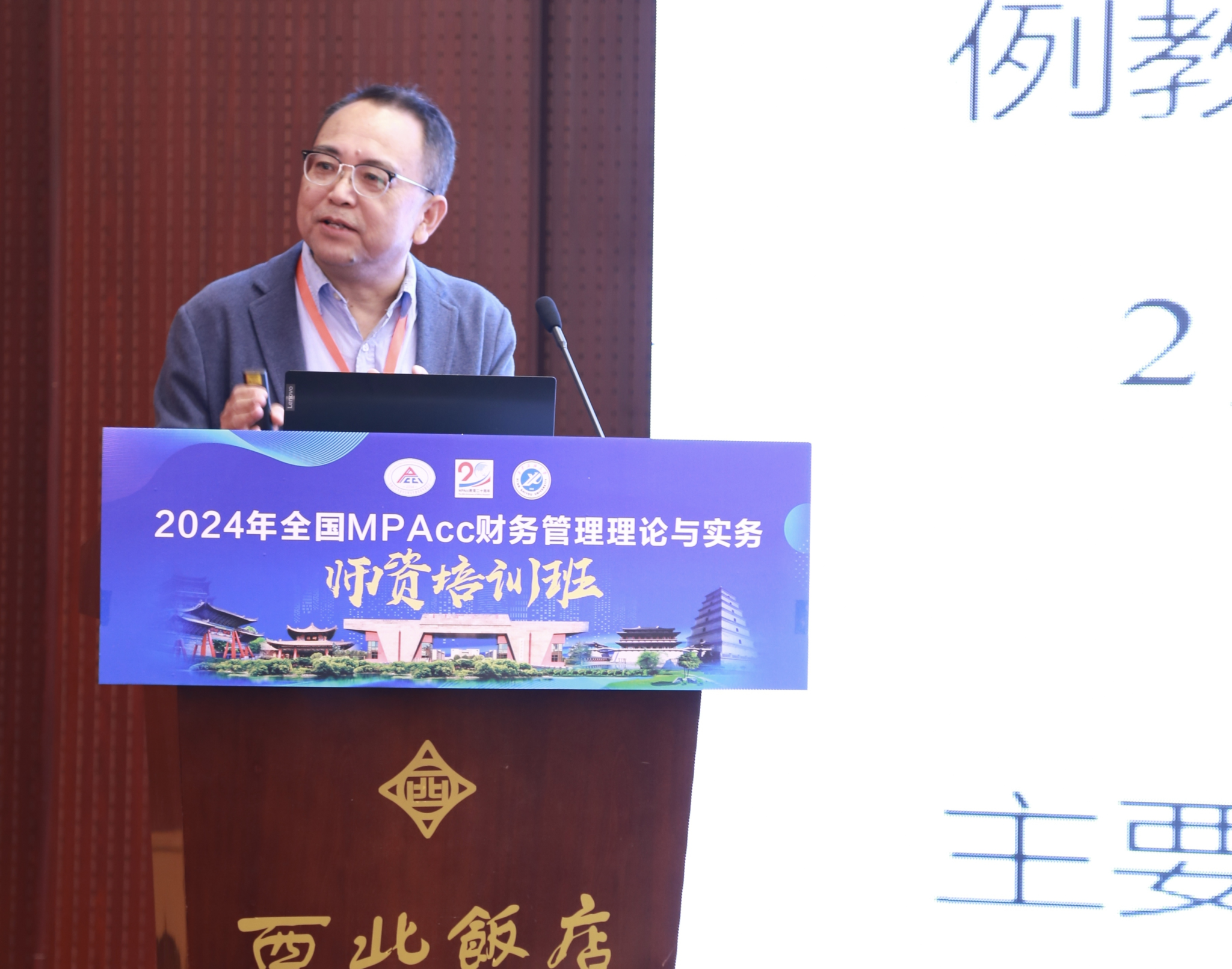 汤谷良作题为《数智化财务管理创新案例-立足MPAcc课堂的分享》的专题讲座。他提示参培学员认真学习国资委《央企加快建设世界一流财务管理体系的指导意见》,并共同探讨了该指导意见的目标定位及“1445”框架。在此基础上,他提出案例创新必须注重源头,必须来自国家战略需要和企业现实需求,并以数字化转型与财务管控创新为例,引导学员思考案例如何设计才可以“让同学们迅速身临其境”,强调教师应紧跟时代步伐,用“好玩”的案例,为MPAcc案例教学注入新的活力。