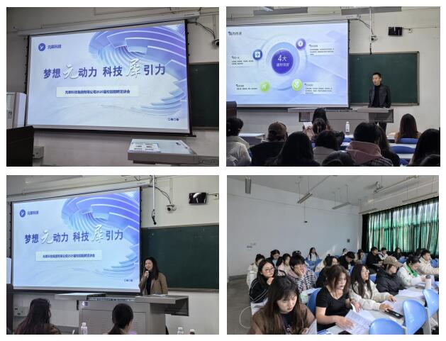 招聘会上,犀为科技总经理赵团飞及企业人力总监舒敏介绍了公司的企业文化、经营项目、发展规划和人才招募机制,并就同学们关注的职业发展、工资待遇等问题进行了耐心地解答。