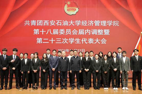 11月27日,共青团西安石油大学经济管理学院第十八届委员会届内调整暨第二十三次学生代表大会在鄠邑校区学术报告厅顺利召开。校团委书记王刚、经济管理学院党委副书记杨生强、经济管理学院团委书记李博文、校团委干事李政、王泽文、学院各年级团总支书记、辅导员以及各兄弟院(系)学生会主席团代表、学院学生代表200余人参加了此次会议。