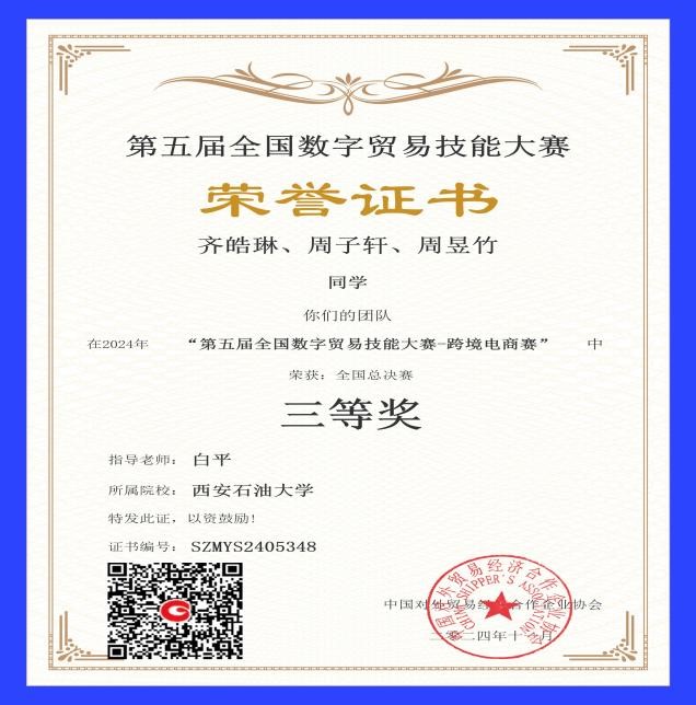 经济管理学院学子在第五届全国数字贸易技能大赛(跨境电商赛项)中获佳绩