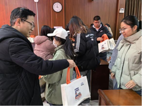 活动现场,学院为同学们送上了精心准备的考研大礼包。每一份礼物都承载着深深的祝福和期待。礼包中包含了考试专用文具、驱除寒冷的暖宝宝、学院设计的手提袋等物品。这些礼物不仅体现了学院对同学们的深切关爱和美好祝愿,更激发了同学们备考的信心和动力。同学们纷纷表示深受感动与鼓舞,表示一定会牢记嘱托,以最好的状态全力备考。
