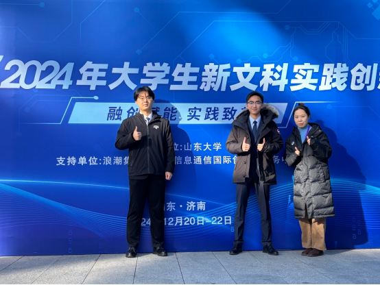 12月20日至22日,由教育部高等教育司指导,山东大学主办的首届大学生新文科实践创新大赛决赛在山东济南举行。由经济管理学院本科生徐顾铭、传浪波等同学组成的“丝绸织路”团队作品《多维拓源 跃迁焕新——新质生产力下中国纺织业绿色要素赋能转型升级》作为我校唯一晋级现场赛项目入围终审决赛,获首届大学生新文科实践创新大赛银奖。校团委书记王刚、经济管理学院郑蕊教授、任仰老师指导参赛。