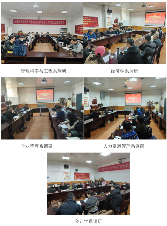 1月3日,经济管理学院领导班子成员王君萍院长、董春诗副院长、李春霄副院长赴管理科学与工程系、会计学系、企业管理系、经济学系、人力资源管理系调研,深入了解、梳理、总结各系教育教学成果培育情况。