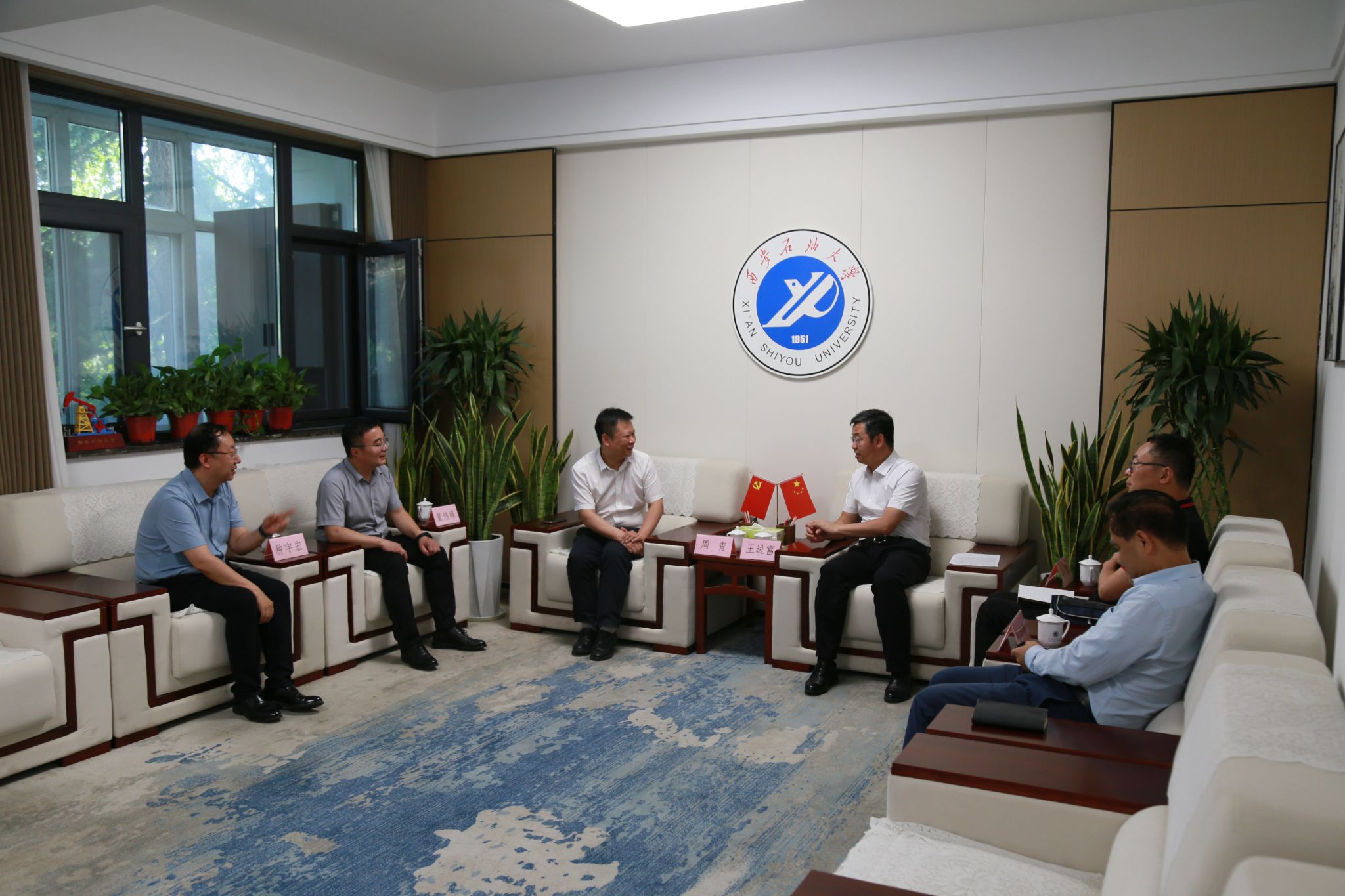我校校长王进富在行政楼接待室会见了校友周青和董伟峰。王进富对两位校友的到访表示热烈欢迎,并高度评价了他们在各自领域取得的成就。在与周青的交流中,双方就两校发展现状、教育科技人才一体化改革及拔尖创新人才培养等议题进行了深入探讨。他强调,校友是学校发展的重要资源和宝贵财富,希望校友们一如既往地关心母校发展,常回来看看,为学校建设建言献策、贡献力量。