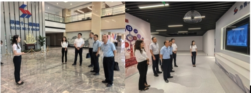 在集团副总经理薛力等领导的陪同下,学院领导一行参观了企业展厅。通过讲解员的介绍,详细了解了陕建十一建集团的发展历程、业务布局、企业文化以及在重大工程建设项目中取得的突出成就。展厅内陈列的各类荣誉奖项、BIM技术应用案例及智慧工地管理系统,充分展现了企业在建筑领域的技术实力与创新能力。