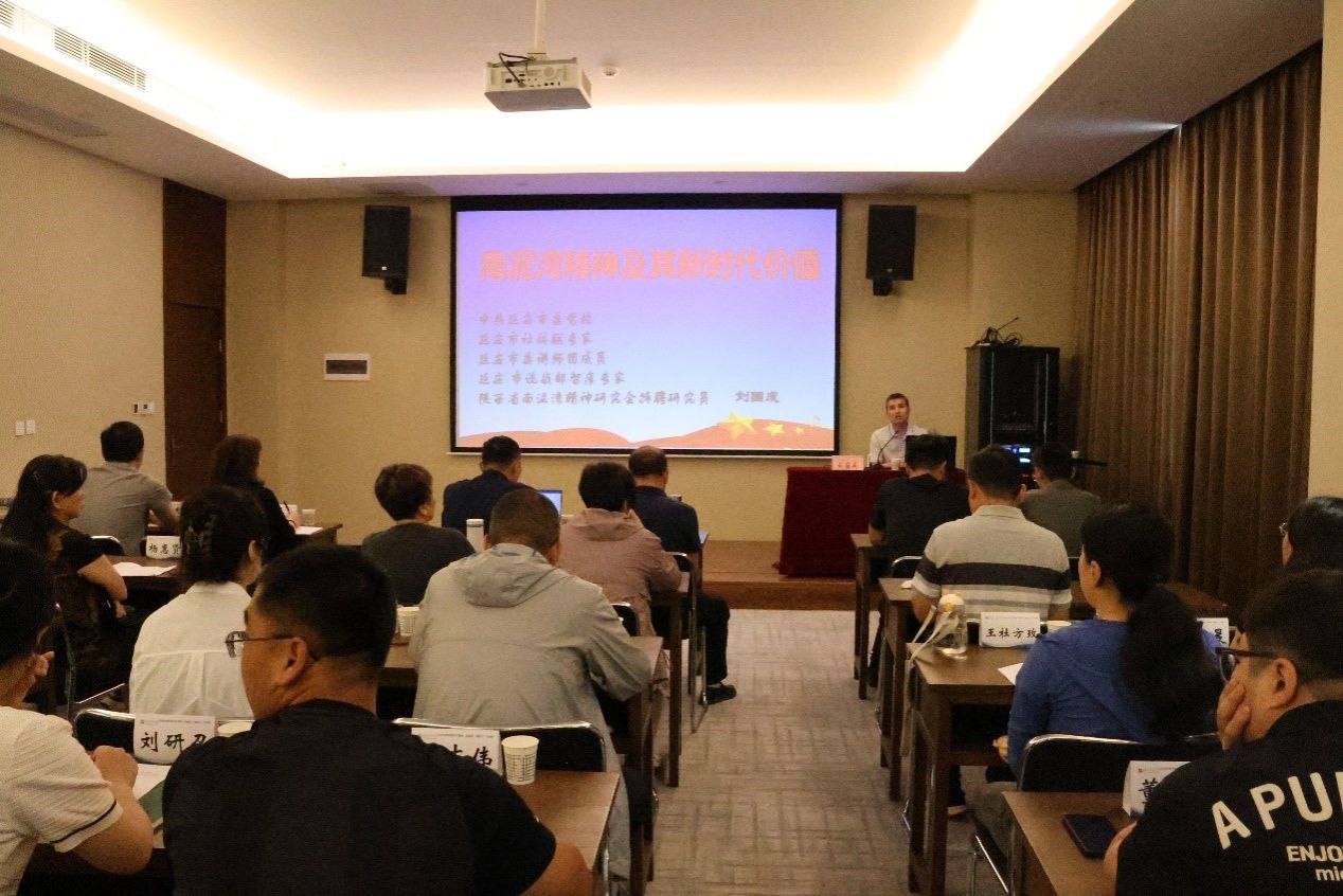 25日上午,培训班邀请延安市委党校刘国成教授作题为《南泥湾精神及其新时代价值》的专题讲座。刘国成从南泥湾精神的形成条件、历史过程、主要内容和时代价值等方面,系统阐述了南泥湾精神中的自力更生、艰苦奋斗的革命精神,团结一致、迎难而上的斗争精神,争当模范、顽强拼搏的进取精神,敢于突破、勇于创造的创新精神。他指出,南泥湾精神永远不会过时,继承和发扬南泥湾精神,必将激励我们为为民族复兴、社会和谐、人民幸福而不懈努力。
