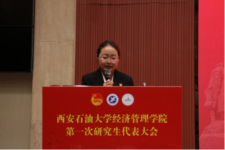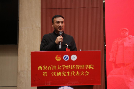经济管理学院党委副书记赵纪飞致闭幕词,感谢各方支持与配合,指出大会圆满完成了各项任务,期望学院研究生会以铁人精神为指引,秉持“全心全意服务同学” 宗旨,在促进学风建设、强化社会实践与校园文化建设、培养研究生综合素质等方面开展系统性工作,搭建起学校与学院、学院与青年学生间的坚实纽带。他强调,第一届研究生委员会要以习近平新时代中国特色社会主义思想为指引,贯彻党的二十届四中全会精神,不忘初心、牢记使命,全心全意为同学服务。鼓励全院研究生坚定理想信念、树立远大抱负,将所学知识转化为解决实际问题的能力,秉承 “好学力行、自强不息” 的校训,为祖国石油事业和民族伟大复兴贡献青春力量。