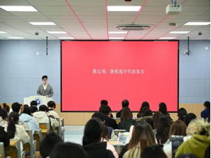 学院党委副书记赵纪飞代表学院致辞,首先对交通银行一行的到来表示热烈欢迎,也向在本次大赛中脱颖而出的获奖同学致以衷心祝贺。他表示,证券模拟交易大赛是课堂教学的有效延伸与实践补充,同学们在赛事中充分展现出扎实的专业素养、活跃的创新思维和勇于拼搏的进取精神,这份表现令人倍感欣慰。希望同学们能以此次大赛为契机,始终恪守金融行业的诚信底线,深耕专业知识、筑牢能力根基,在市场的起伏中锤炼沉稳的心理素质,在协作的过程中凝聚团队合力,更要立足行业发展、胸怀国之大者,做到德才兼备、以德为先,将所学所悟运用到服务实体经济的实践中,在金融领域的探索与耕耘里成就属于自己的职业梦想。