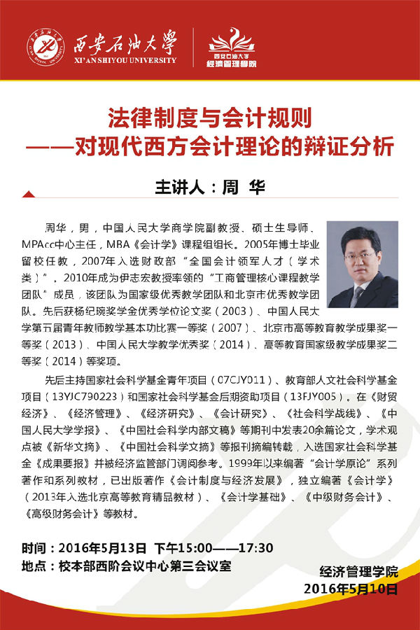 报告主题:法律制度与会计规则——对现代西方会计理论的辩证分析