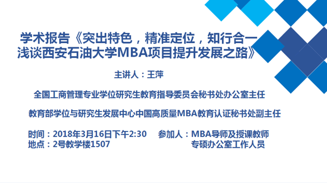 学术报告《突出特色,精准定位,知行合一浅谈西安石油大学MBA项目提升发展之路》