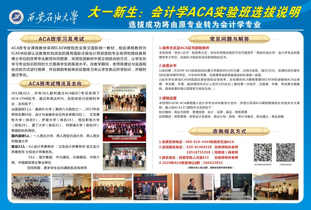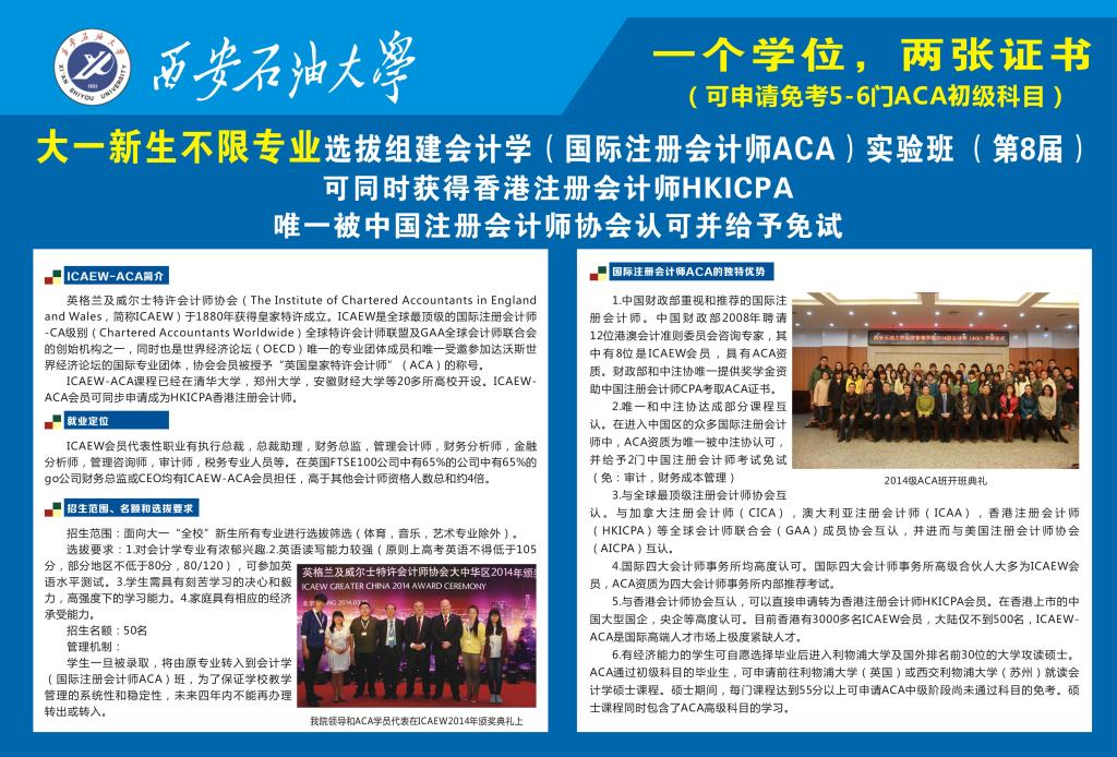 新生必看:在大一新生中选拔组建ACA国际会计师方向班通知(第八届)