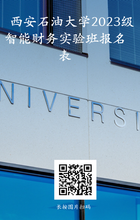 1.志愿填报。面向全校发布财务管理专业智能财务实验班招生通知,通过问卷星(https://www.wjx.cn/vm/QvFd6gf.aspx)填写《西安石油大学2023级智能财务实验班预报名表》(每一位学生只能填写1个实验班报名表,多填、多报无效)。