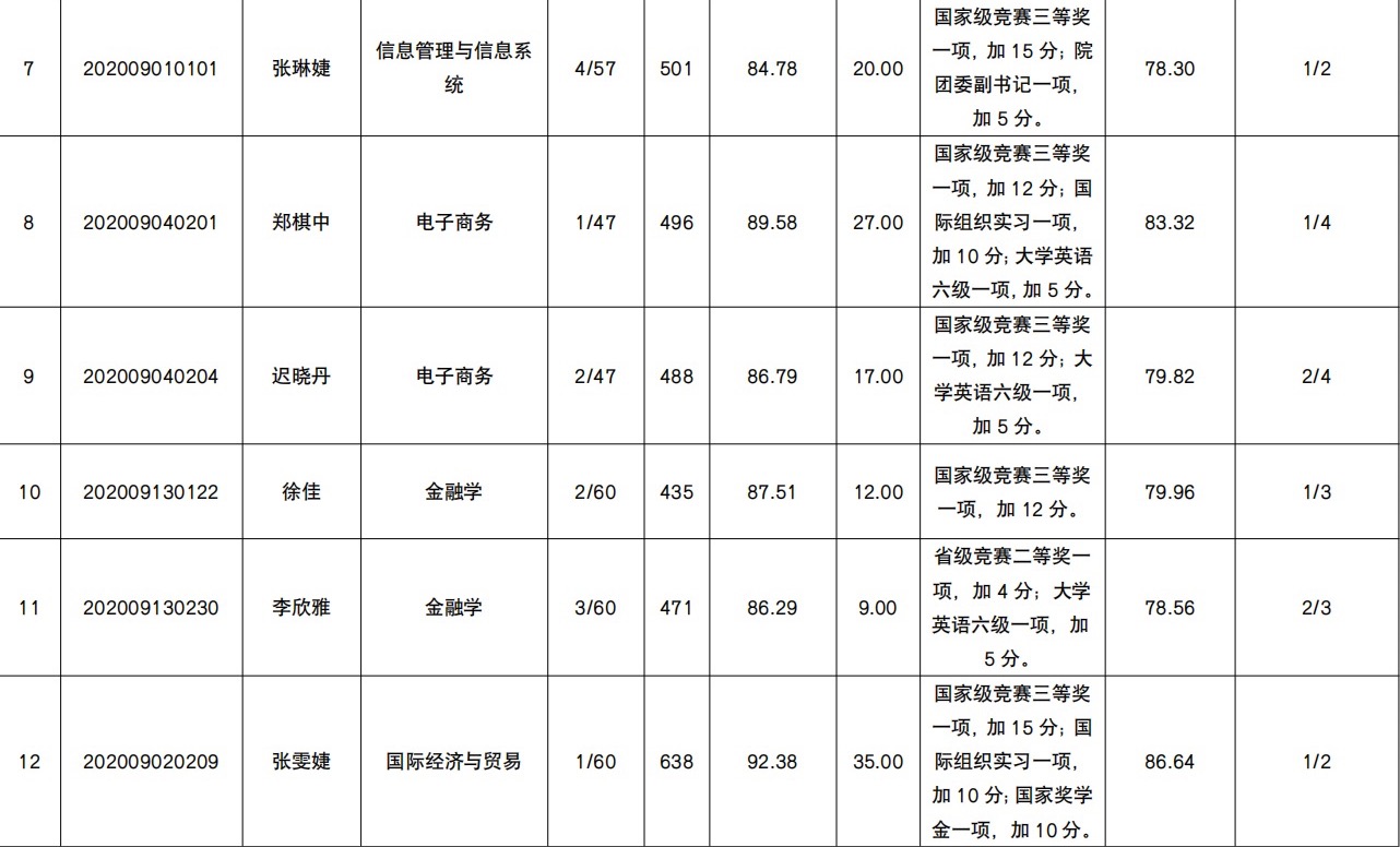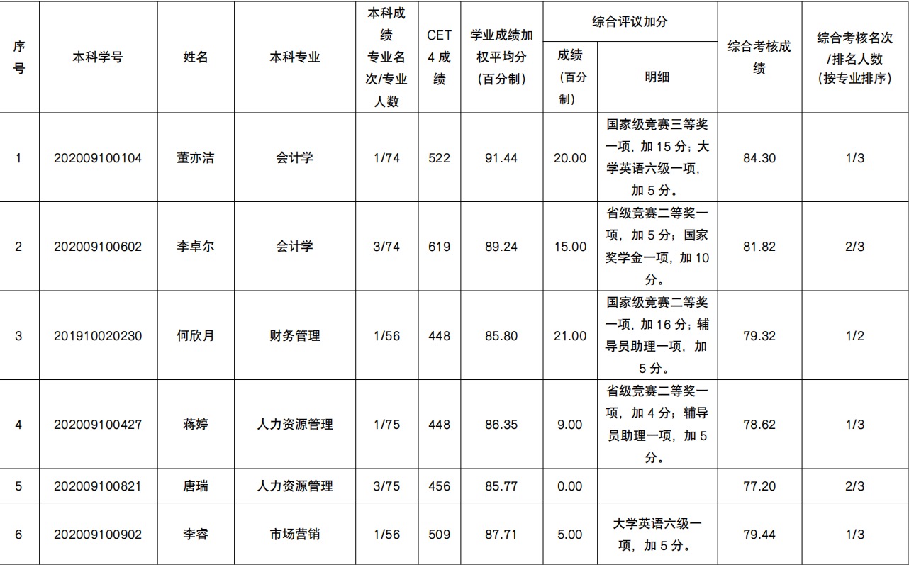 经济管理学院2024年拟推荐优秀应届本科毕业生免试攻读硕士学位研究生资格获得者公示